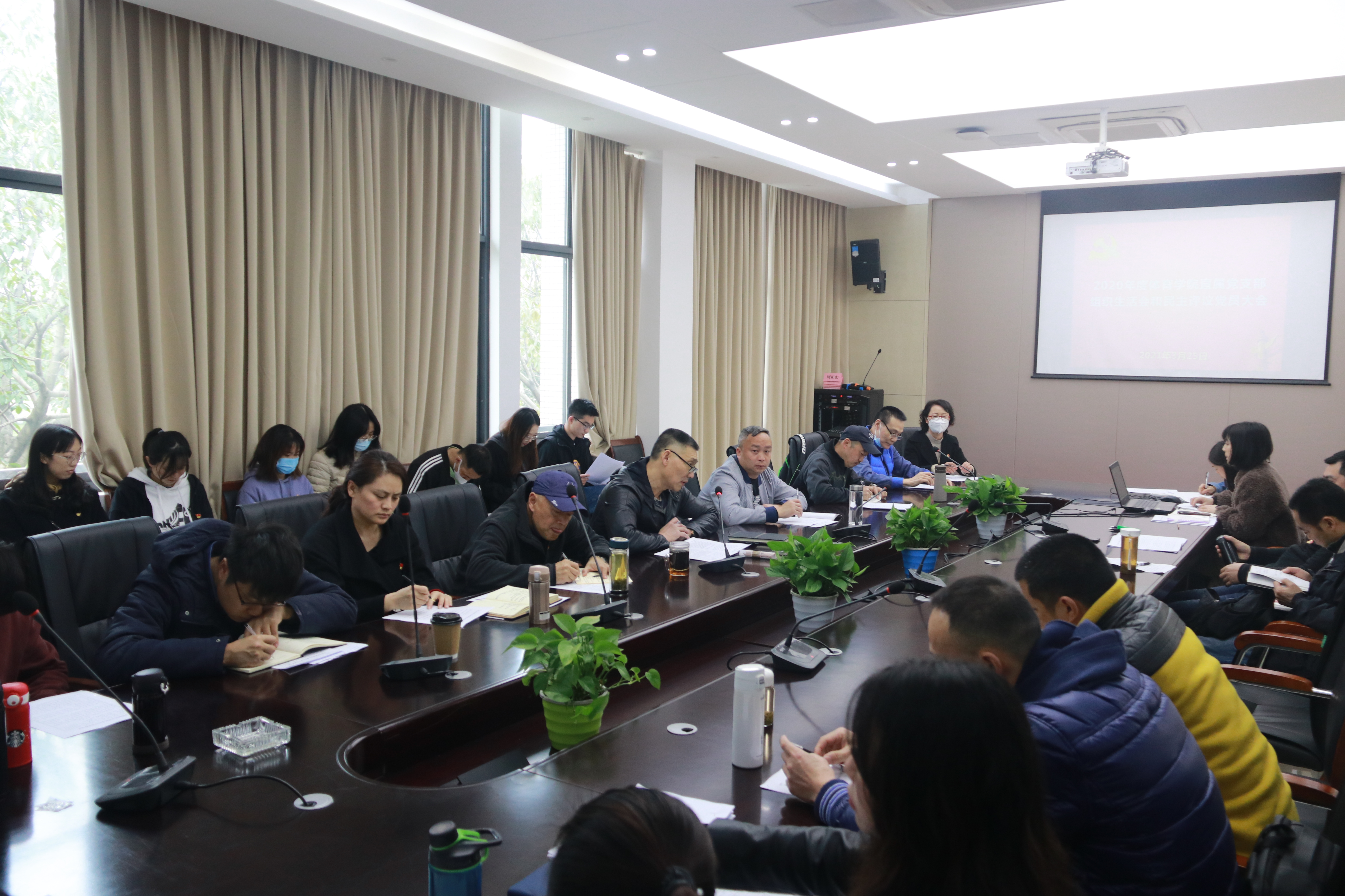 杨远波传达了学校《关于召开2020年度基层党组织组织生活会和开展民主评议党员的通知》精神,要求党员同志们要紧密联系个人实际,盘点收获,认真检视问题。会上,杨远波代表党支部委员会向党员大会述职,报告2020年度支部党建工作,通报了党支部委员会查摆问题情况。随后,领导班子带头发言,全体党员逐一进行自查剖析,书记及支部委员对每位党员进行了认真点评,指出问题,明确整改方向。在充分评议基础上,与会党员匿名填写测评表,对党员同志作出客观评定。