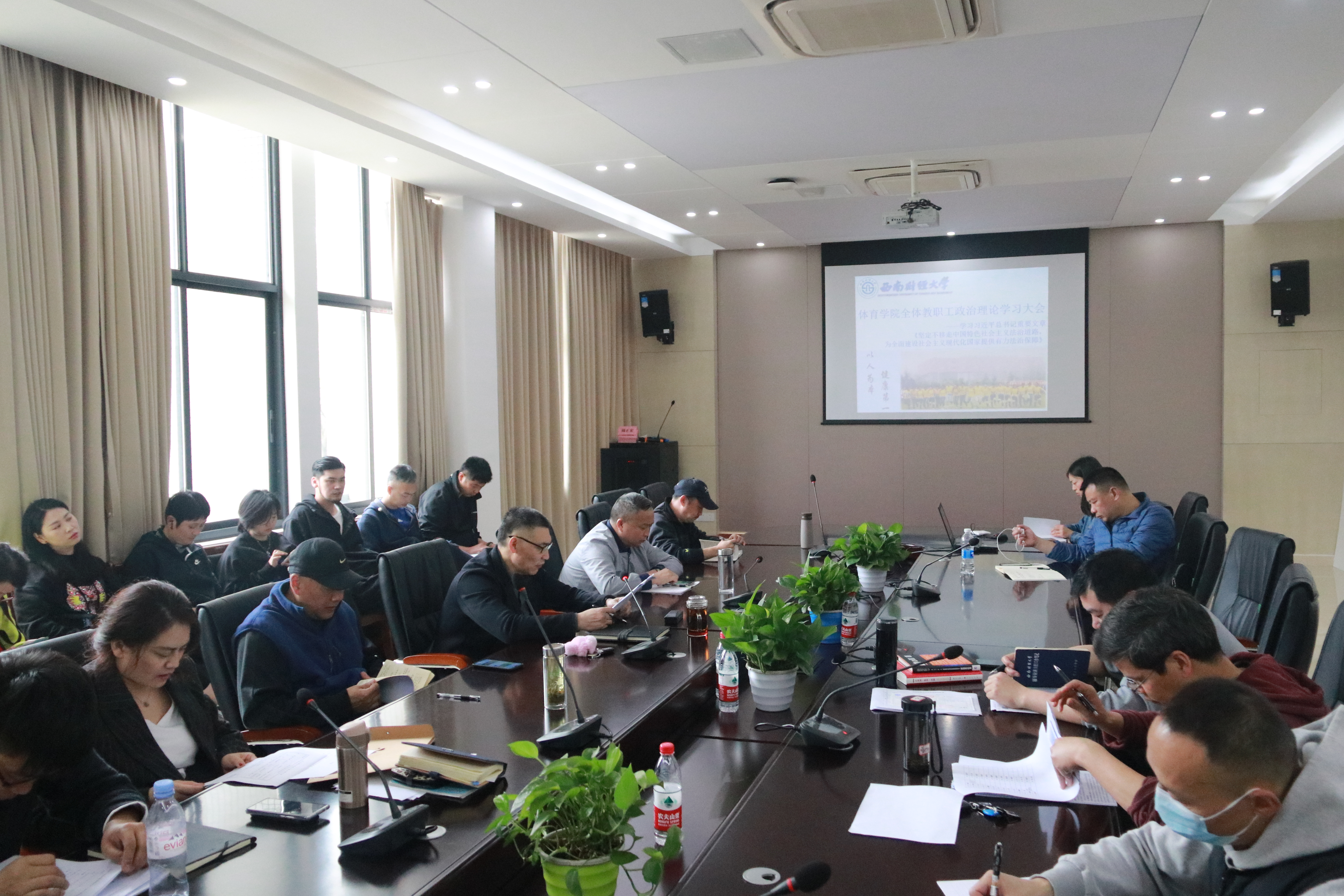 4月13日,半岛平台在游泳池201会议室召开全体教职工政治理论学习会。学院全体教职工参加,会议由杨远波院长主持。