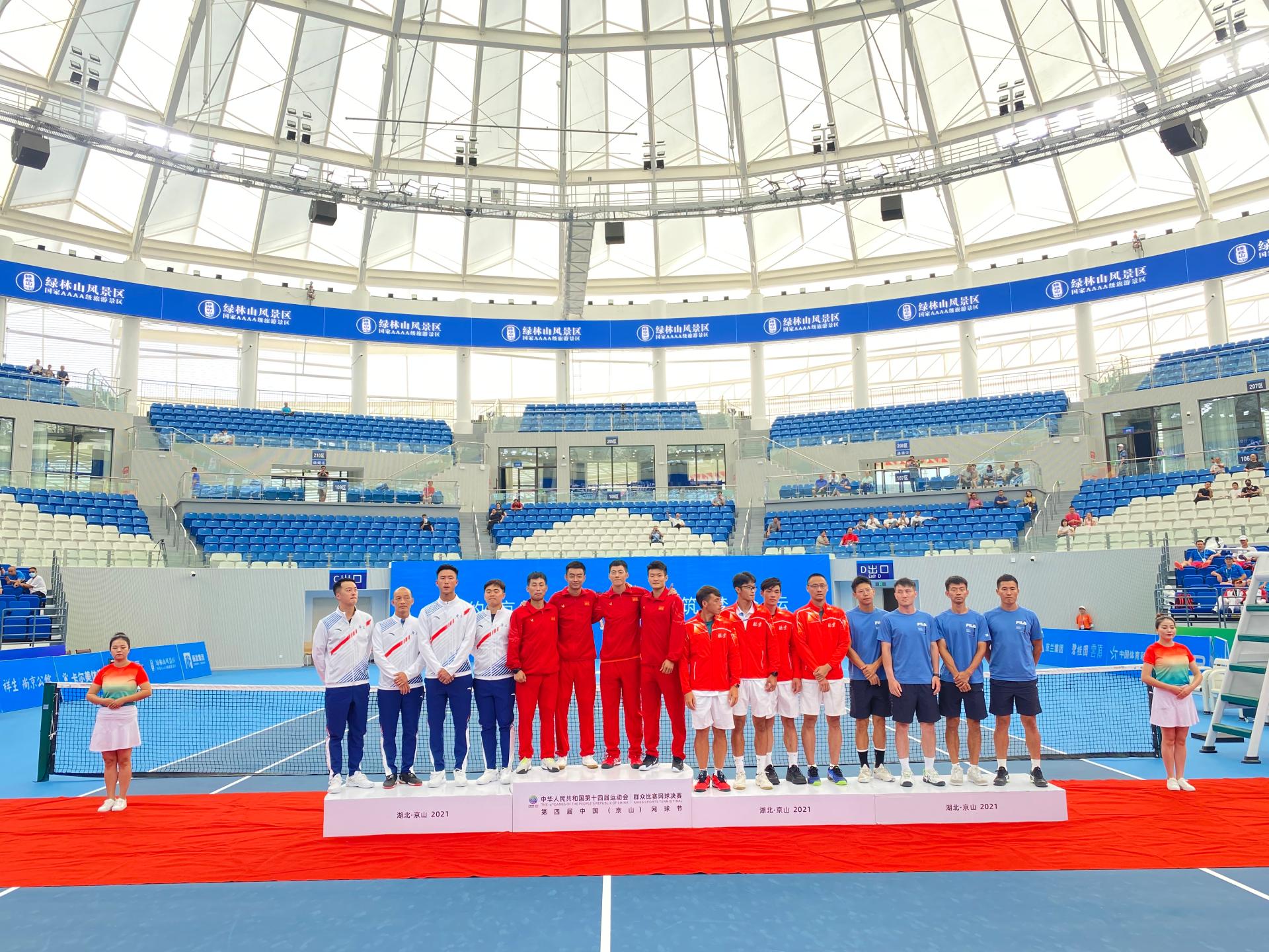 本届全运会根据习近平总书记“人民至上、全民全运”指示精神,首次设立群众体育比赛网球竞赛项目。来自全国 25个省区市和 1个行业体协共26支代表队,近500名运动员、教练员、技术官员参加了比赛。在男子团体决赛中,半岛(中国)教师施泓宇代表四川队出战,施泓宇充分发扬奥林匹克精神和中华体育精神,顶住压力顽强拼搏,发挥出高超的竞技水平,最终四川队以 2: 1 击败广东队,拿到在本届全运会群众项目网球比赛的第一块金牌。在随后进行的男子双打及男子单打比赛中,施泓宇过关斩将,连续五日作战,历经五场单打、四场双打对决,相继获得男子双打银牌及男子单打第五名。