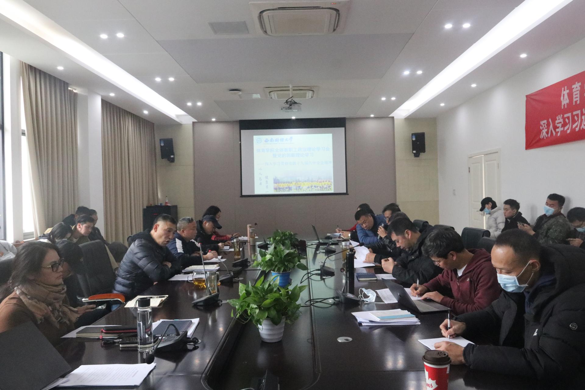 11月16日下午,学院召开支委(扩大)会暨理论组学习(扩大)会议、全体教职工政治理论学习会暨党的创新理论学习,深入学习贯彻党的十九届六中全会精神,会议由杨远波院长主持。