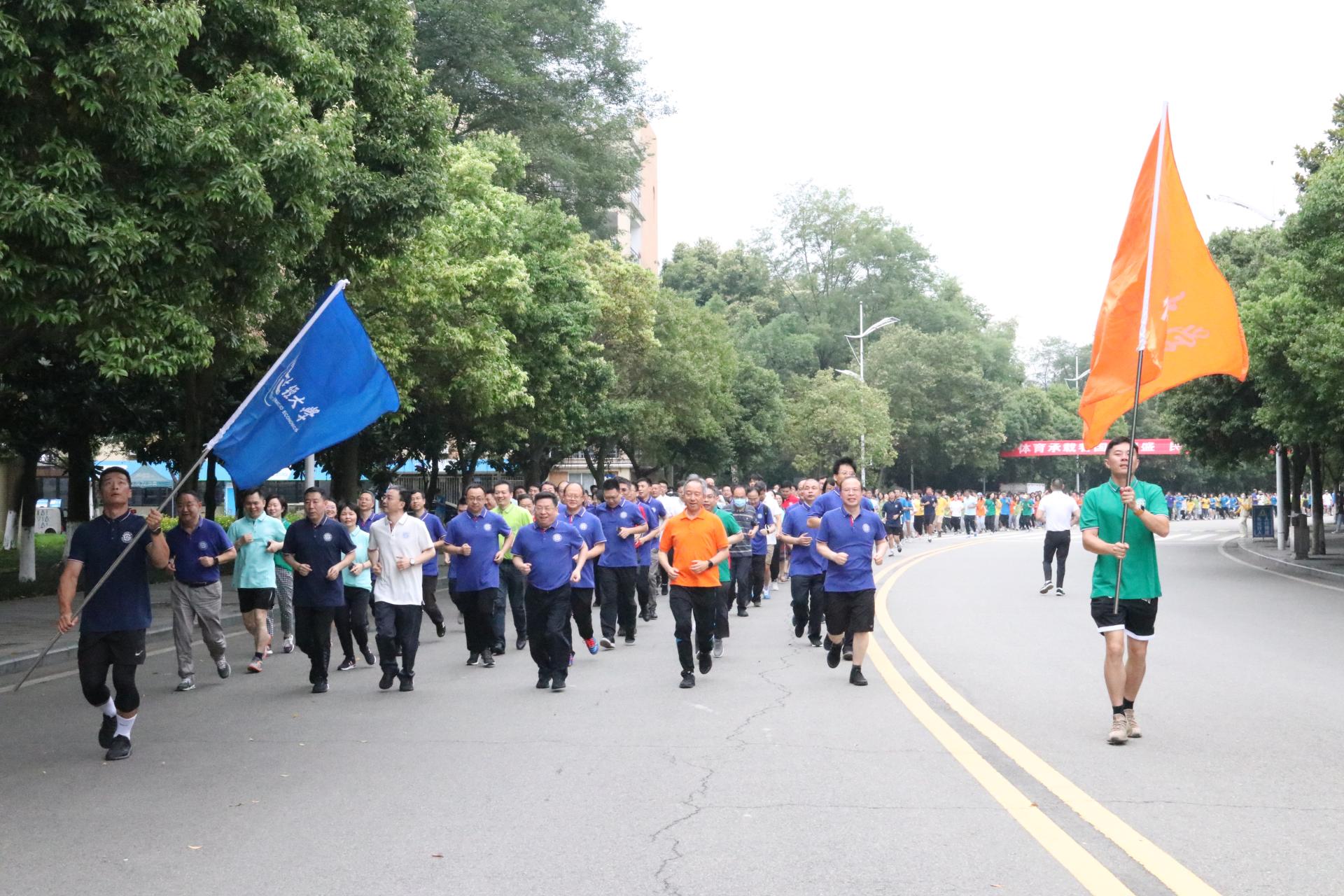 上午9点20分,随着党委书记赵德武发令枪声响起,校庆健康跑正式开始。师生们身着印有校徽的五彩运动服从腾骧楼启程,神采奕奕地踏上平日里熟悉的一寸寸土地,浩浩荡荡的队伍犹如一条长龙穿梭在校园,形成一道斑斓的风景。伴随着 “我运动,我健康,我运动,我快乐”“经世济民,孜孜以求”的响亮口号,师生们沿创业大道一路向前,途经朝晖运动场、光华大学门、济民广场,最终返回腾骧楼,顺利跑完全程。短短1.5公里是对西财97载弦歌不辍、兴学报国奋斗精神的传承,如今师生们更要展昂扬身姿,迈奋发步履,奔向西南财经大学更好的明天。