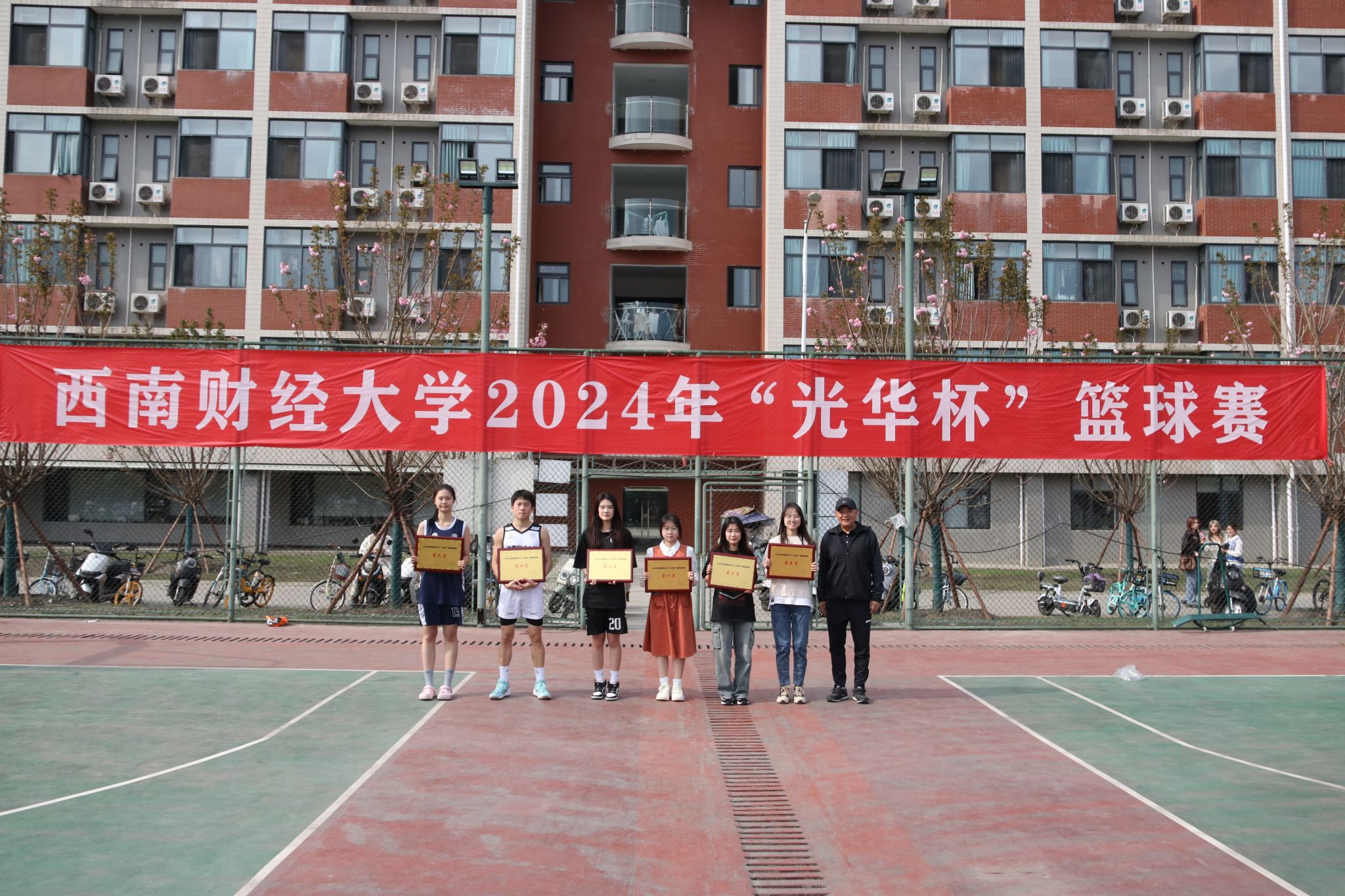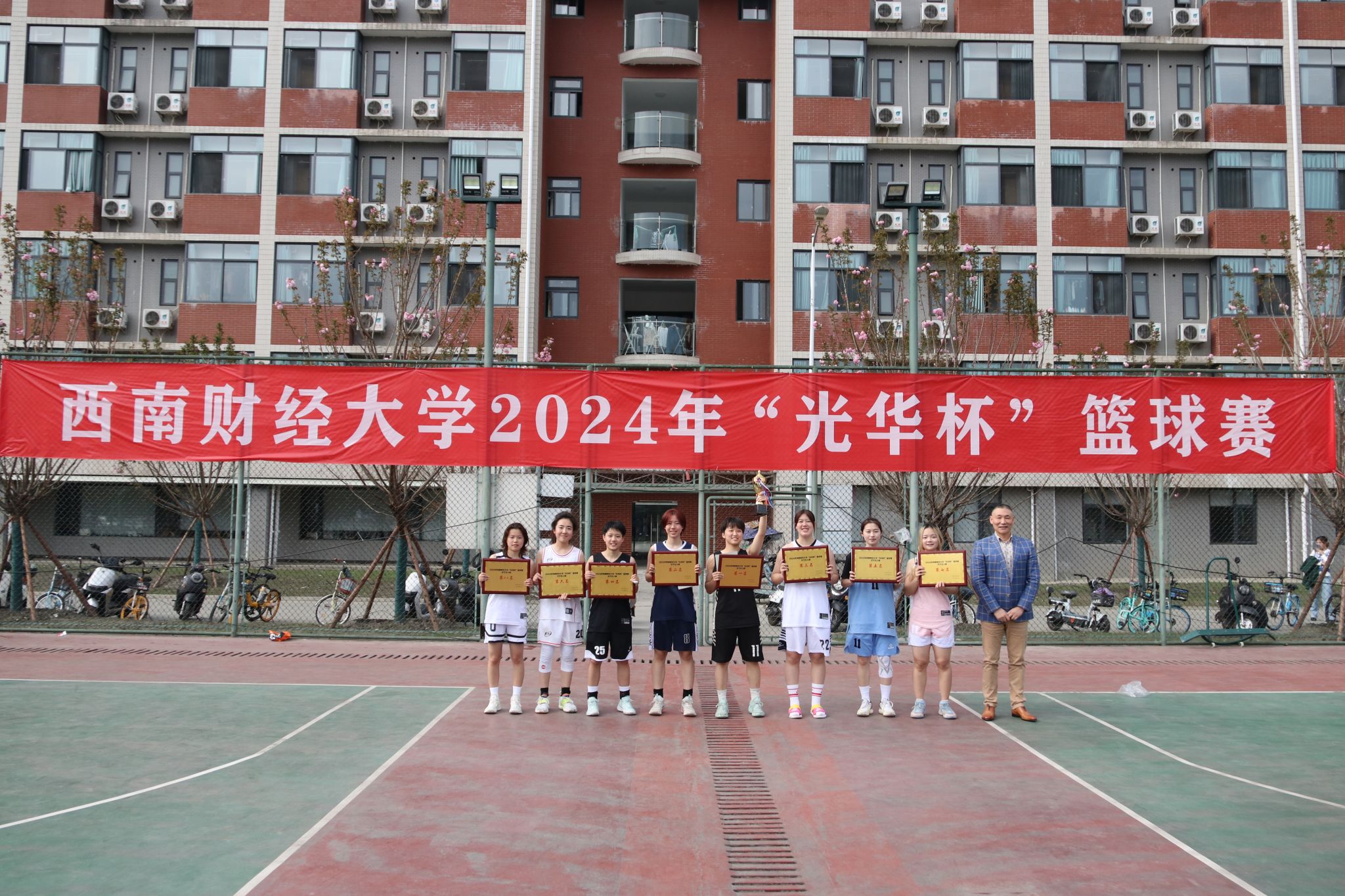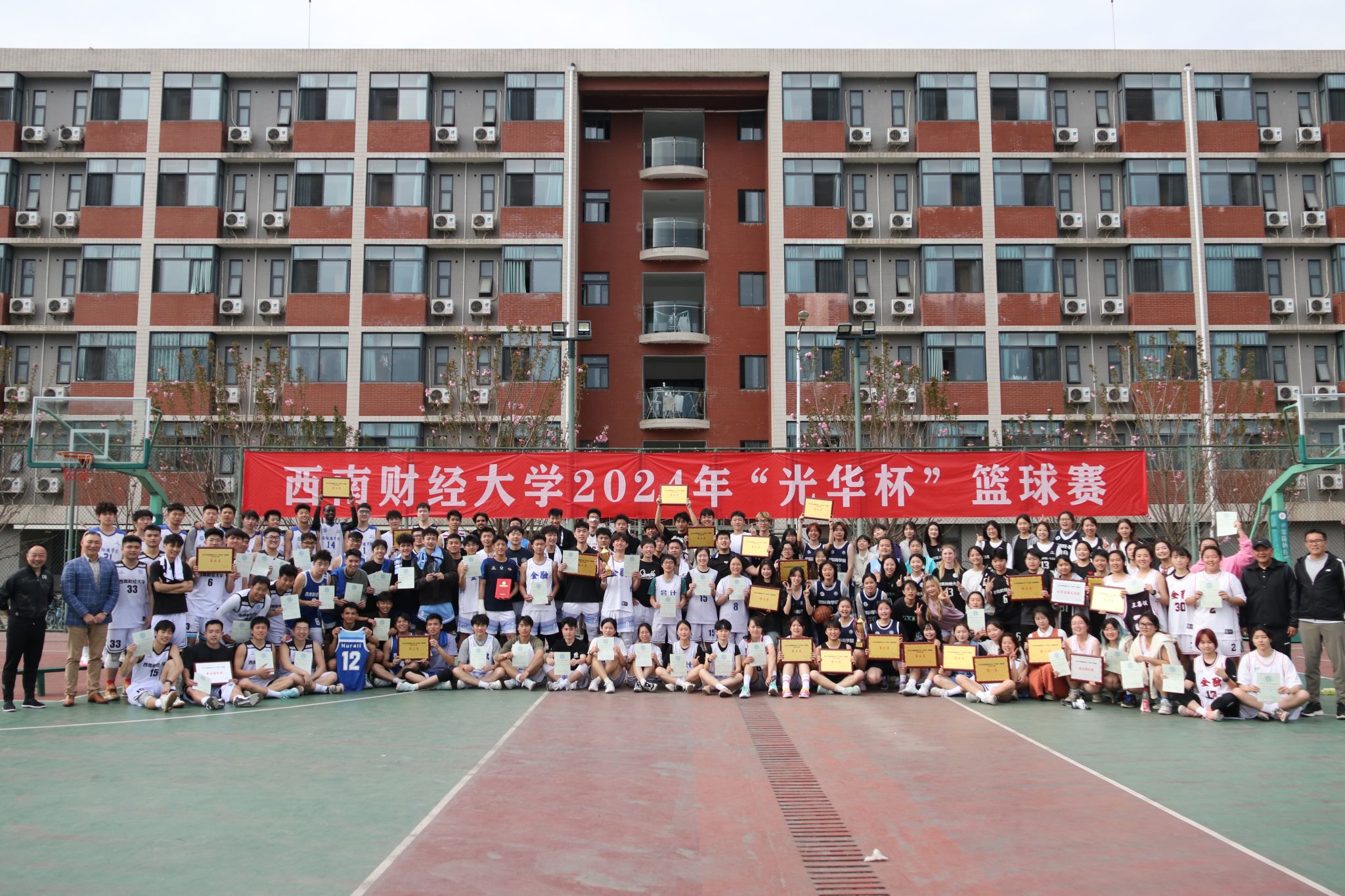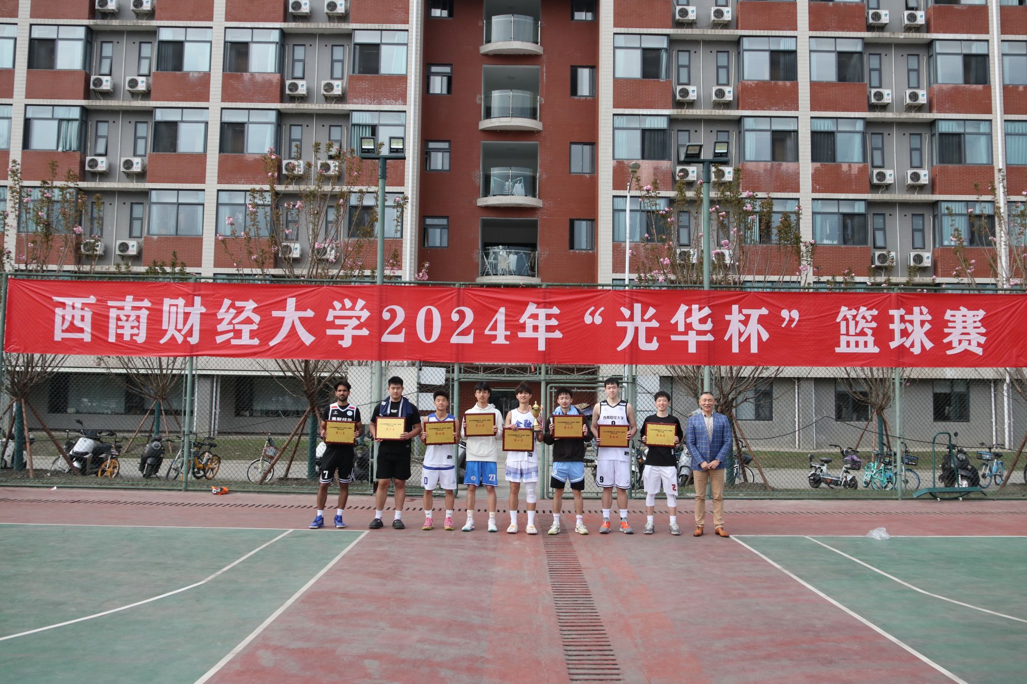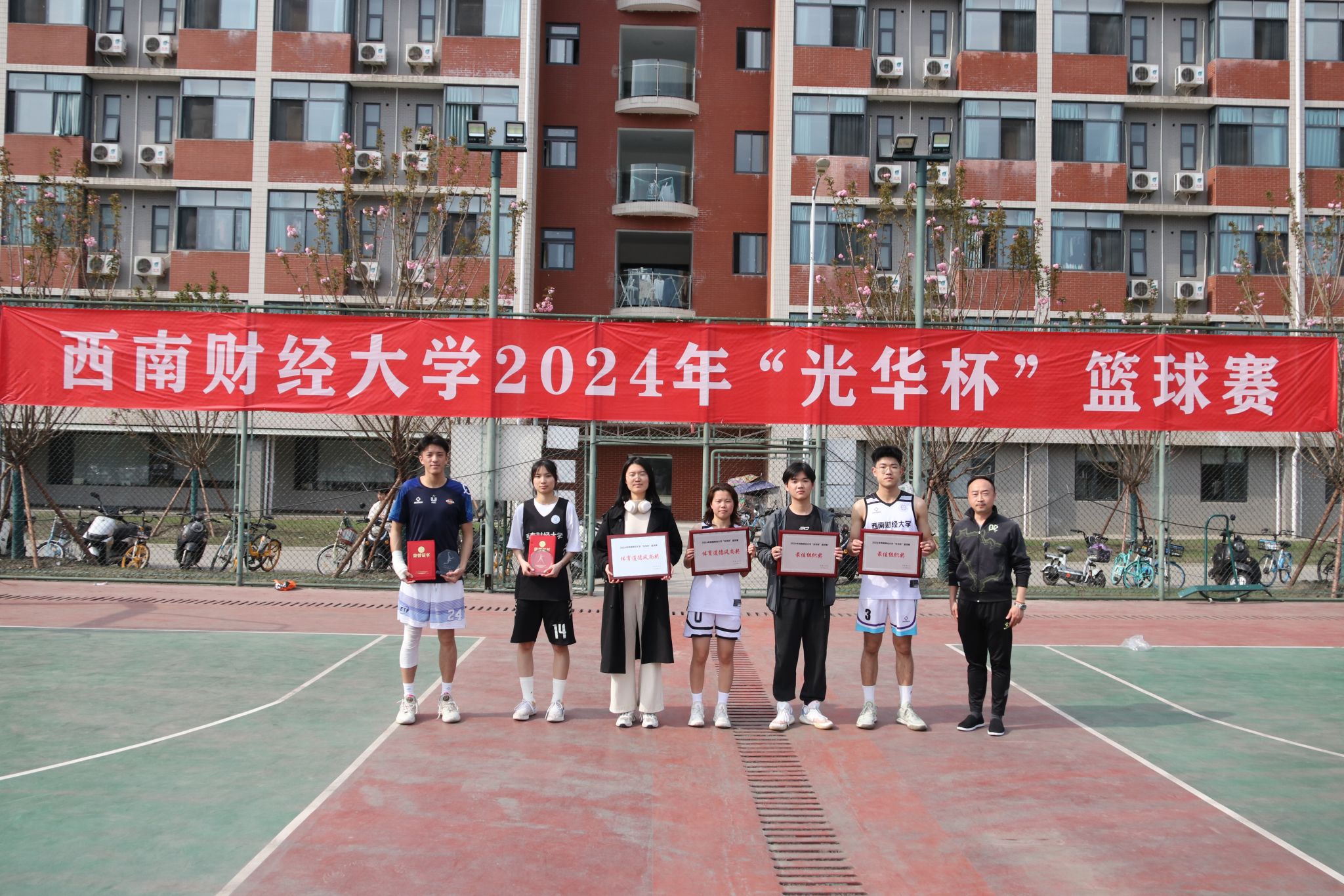 3月26日下午,“礼赞新时代·奋进新征程,迎百年校庆·铸西财辉煌”2024年西南财经大学 “光华杯”篮球赛颁奖仪式在晨曦篮球场举行。半岛平台院长杨远波,副院长阴涛、副书记李治等出席颁奖仪式并为获奖单位及个人颁奖。