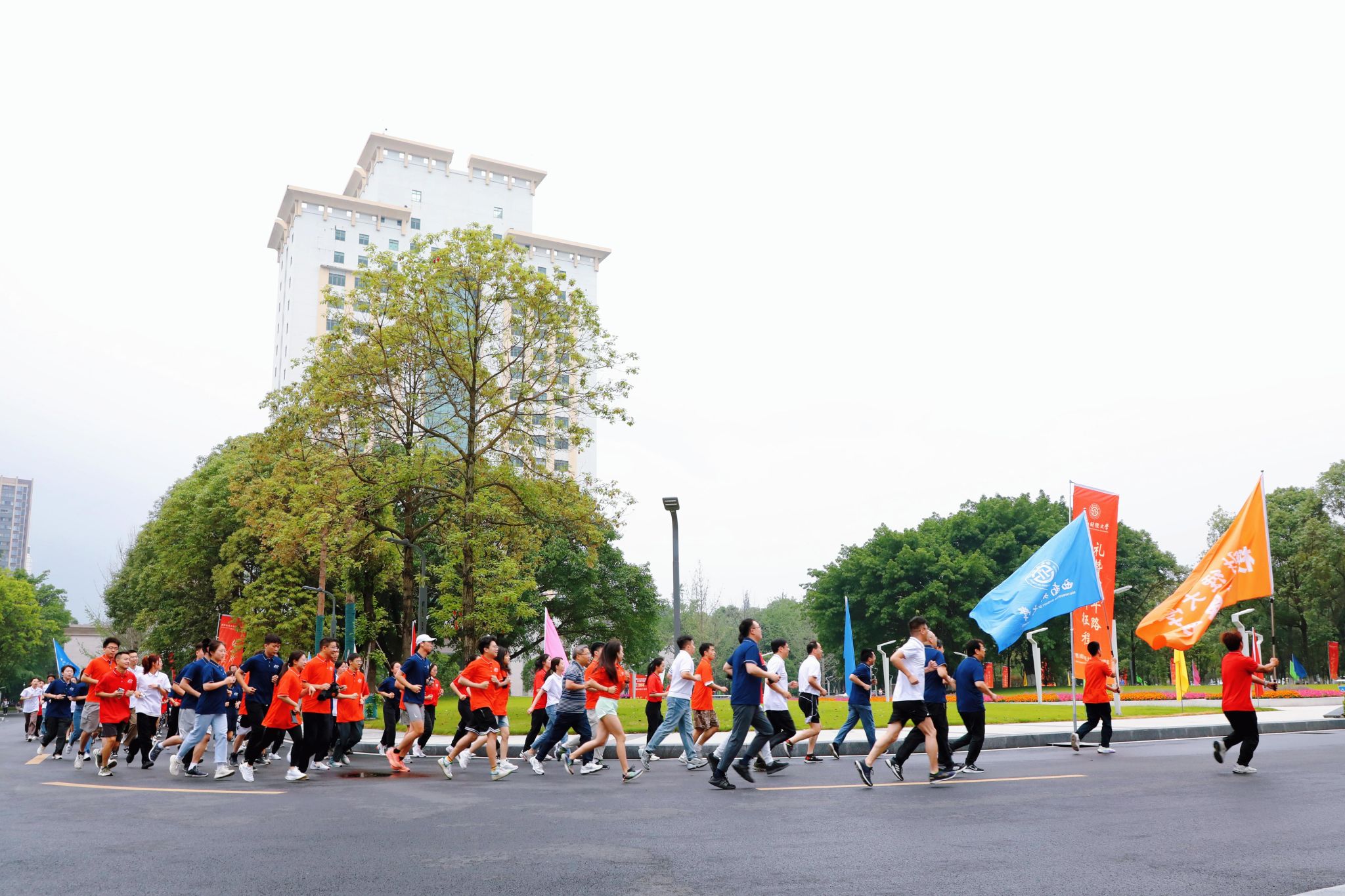 63日,学校举行“源起光华 缘聚西财”校庆健康跑活动。全体校领导、中层干部代表、离退休老同志代表、师生代表、校友代表等600余人在两校区参加活动。