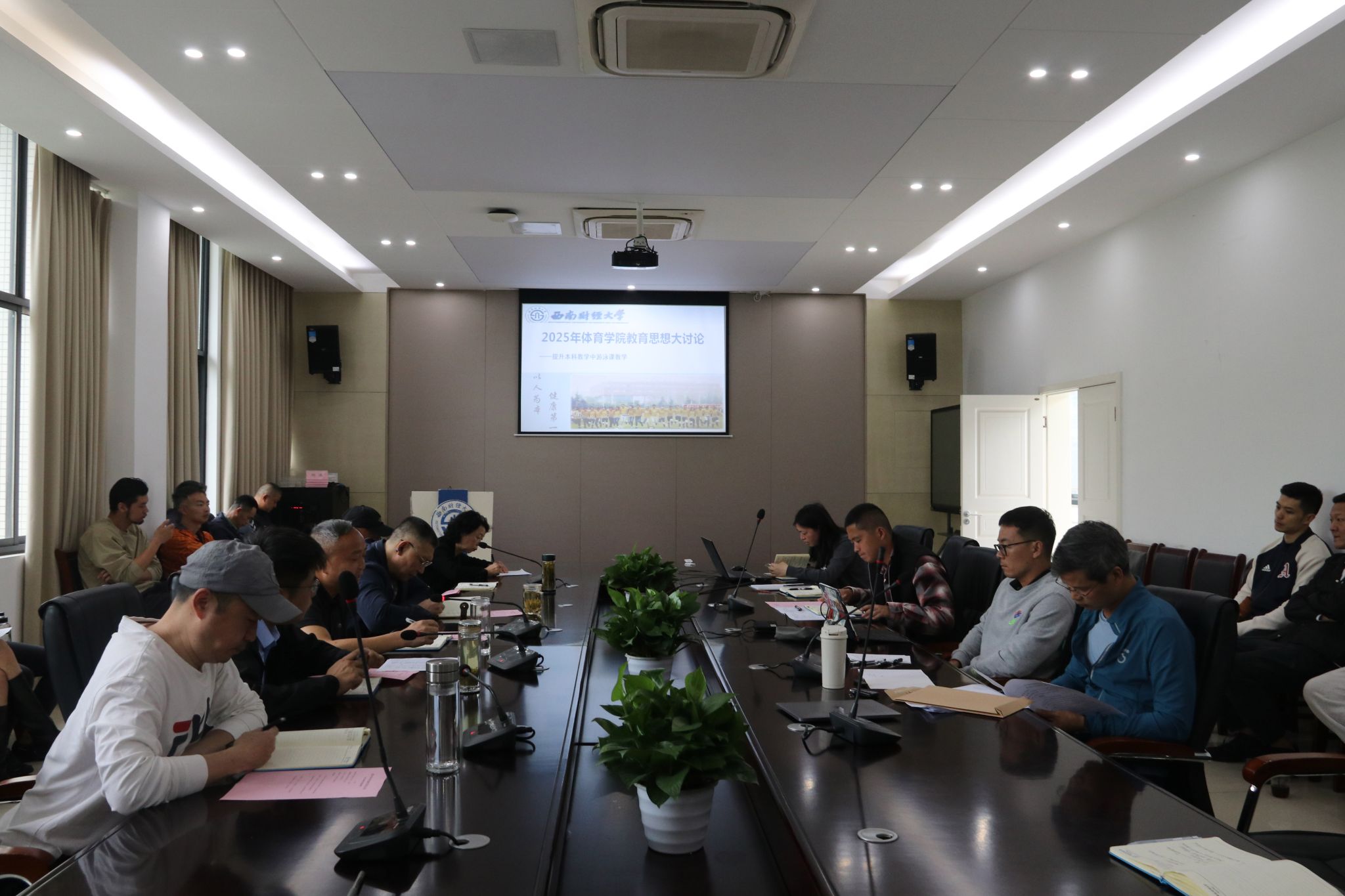 为深入学习贯彻习近平新时代中国特色社会主义思想,系统学习全国教育大会精神,进一步提升游泳课程教学质量,强化师生安全意识,4月29日上午,半岛平台在201会议室召开2025年半岛平台教育思想大讨论提升本科教学中的游泳课教学专题会议。半岛平台党委书记周正宏,副院长(主持工作)陈丛刊,党委副书记、纪委书记李治以及学院各专任教师参会。会议由副院长阴涛主持。
