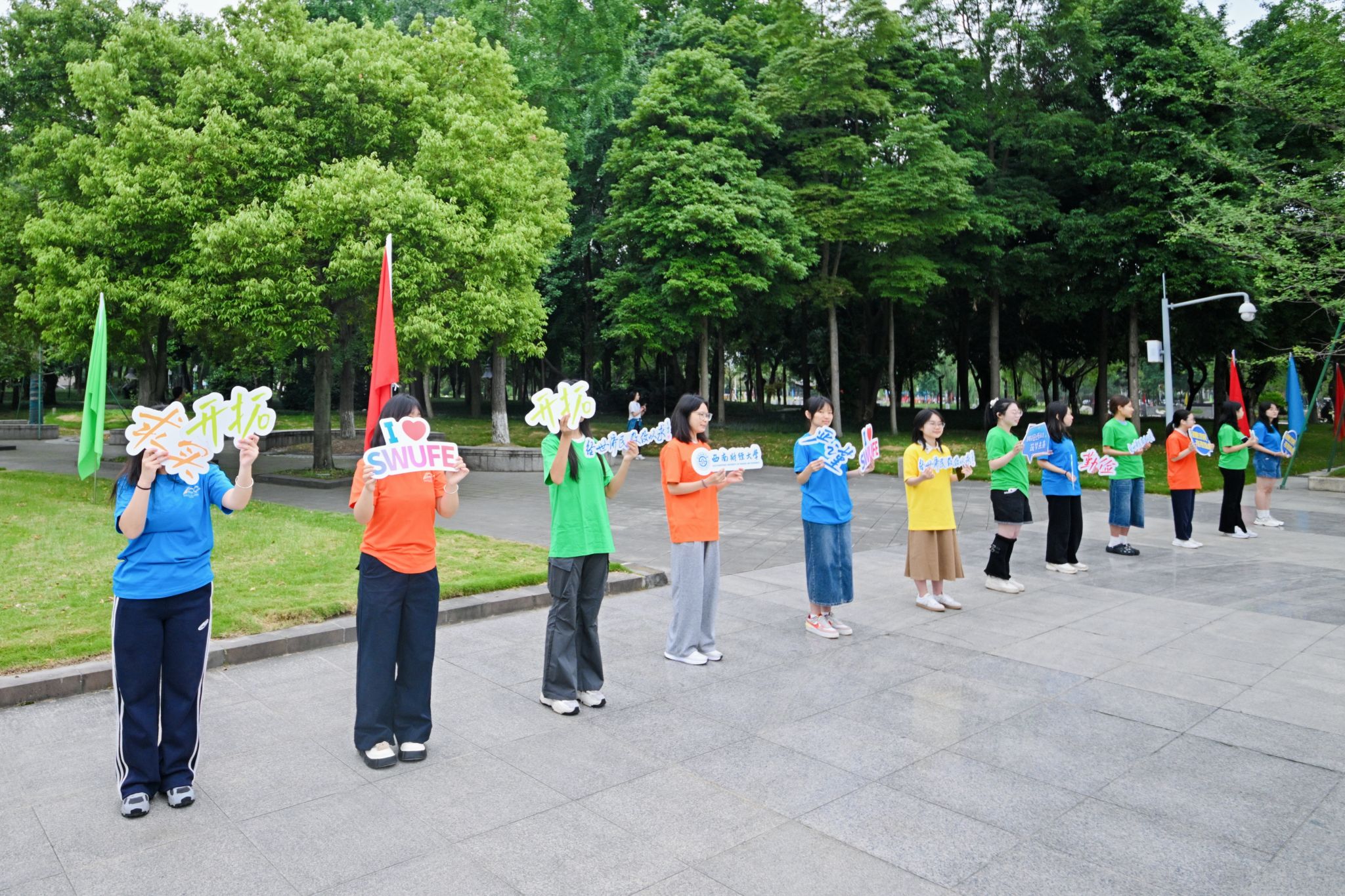 柳林校区腾骧楼前,教师刚劲有力的武术表演和学子奋力挥舞的旗帜交相辉映,在“强国建设、西财担当”“祝百年西财生日快乐”的声声礼赞中汇聚昂扬起“巍巍学府,世纪荣光”的磅礴情怀。