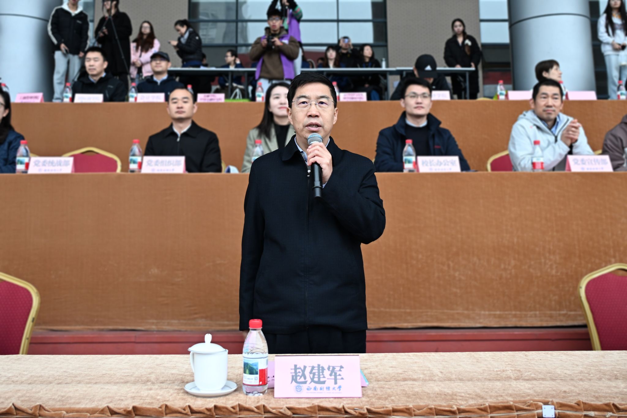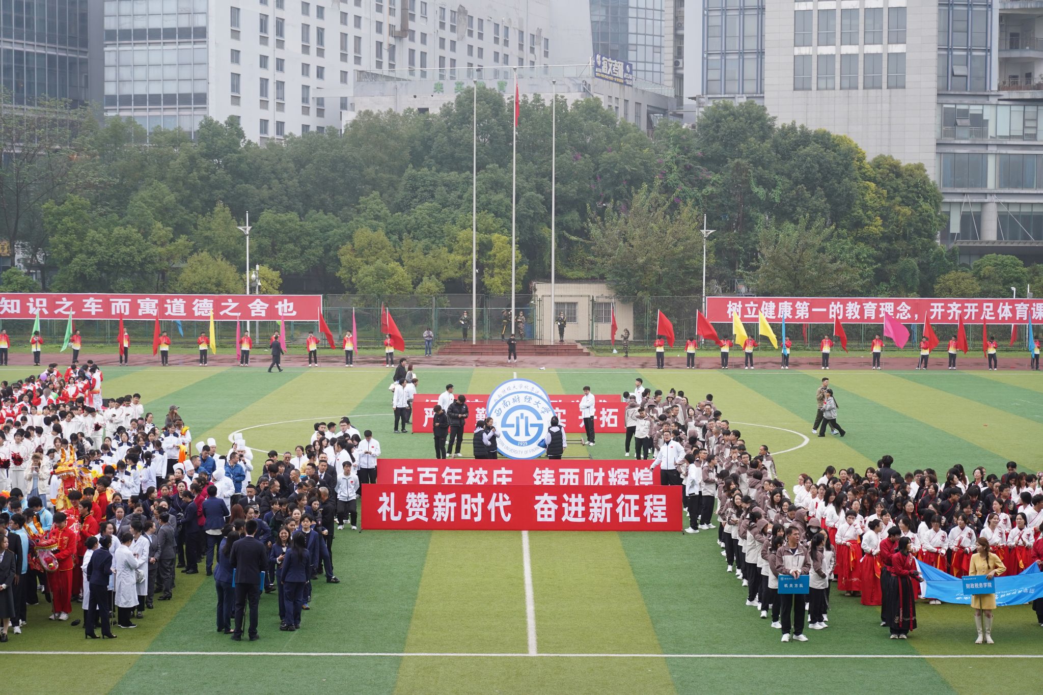 116日—117日,学校2025年秋季运动会在柳林校区举行。运动会以“礼赞新时代·奋进新征程,庆百年校庆·铸西财辉煌”为主题,党委书记赵建军,党委副书记、校长李永强等全体校领导,各职能部门和学院(研究院)负责人参加开幕式。