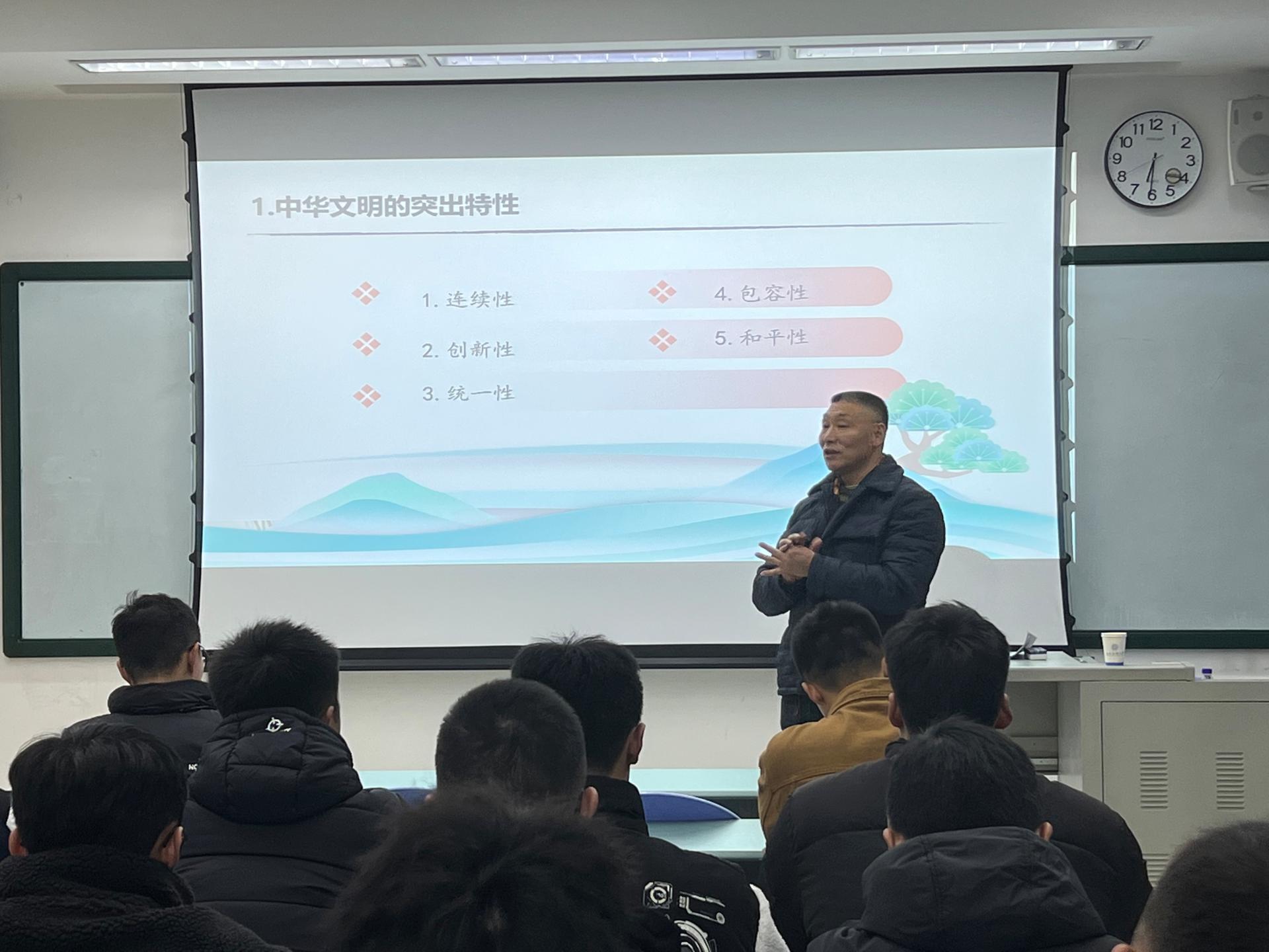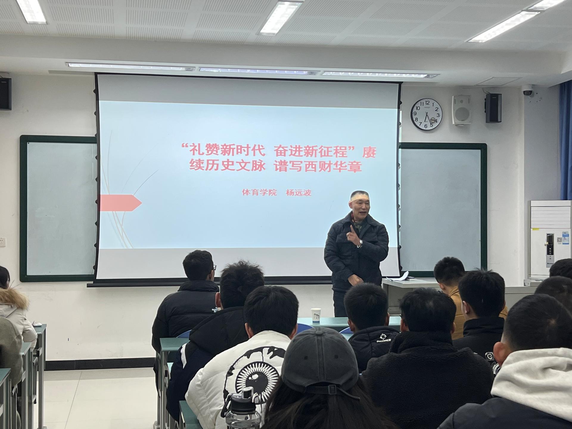 按照学校党委统一部署,1月4日晚18:30,半岛平台院长杨远波教授在明德楼208教室为学院2023级全体专硕研究生讲授专题思政课。